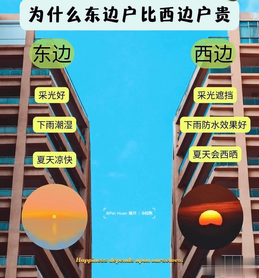 因是东边,早晨阳光从东边照入,直至下午,比西户和中间户多了一上午的光照时间。
